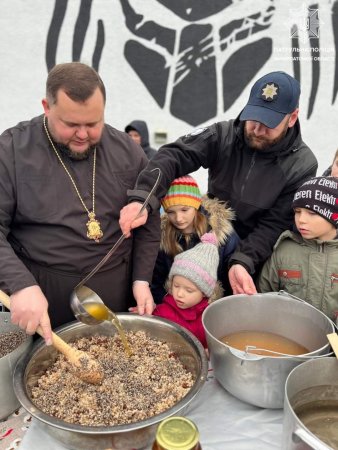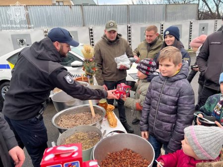 Сьогодні в управлінні патрульної поліції Закарпатської області інспектори спільно із представниками духовенства та небайдужими громадянами готували кутю. До процесу приготування страви долучилися й діти, які допомагали дорослим поєднувати інгредієнти.