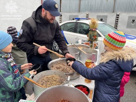 Патрульні поліцейські Закарпатської області приготували кутю для дітей-переселенців та патрульних, що у різдвяну ніч нестимуть служби