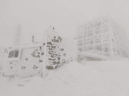 Станом на 9:40 09.01.2023р. на г. Піп Іван Чорногірський хмарно, вітер південно-західний, 8-9 м/с., пориви до 15 м/с., температура навколишнього середовища -5°С.
