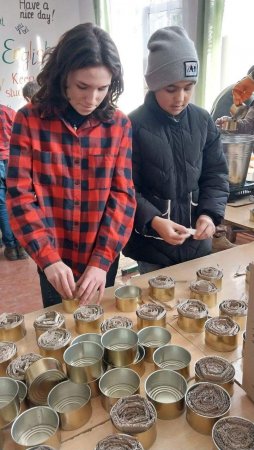 Завдяки спільним зусиллям волонтерів та викладачів закладу діти дуже швидко опанували техніку виготовлення. Бляшанки, гофрокартон, парафін стали в пригоді, і за декілька годин учні накрутили 💪 понад 100 окопних свічок.