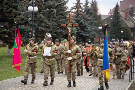 На набережній Незалежності священники відслужили заупокійну Літургію. Провести Героя в останню путь прийшли багато ужгородців, рідні, друзі, знайомі Олексія, військовослужбовці, заступник міського голови Вадим Борець.
