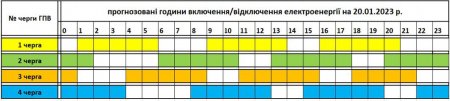 Закарпаттяобленерго на своєму офіційному сайті оприлюднило графік відключення світла на п’ятницю, 20 січня. Електроенергію завтра відключатимуть у всіх чотирьох чергах.