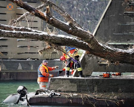 Фахівці групи рятувальних робіт за допомогою бензопил розрізали стовбури, а далі, застосовуючи лебідку, витягали їх на берег річки. Загалом рятувальники очистили три мостові опори, прибравши близько трьох кубометрів деревини.