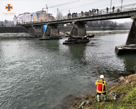 Сьогодні в Ужгороді рятувальники розчищали підмостовий прохід річки Уж, від деревини