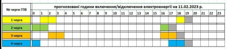 Прогнозовані години включення/відключення електроенергії на суботу, 11 лютого