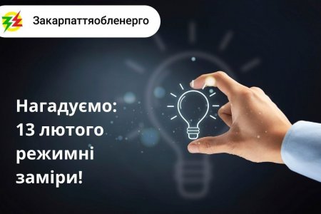 Нагадуємо: сьогодні, 13 лютого, на Закарпатті впродовж доби (з 0.00 до 24.00) проводять заміри споживання електроенергії для визначення, скільки її фактично треба.