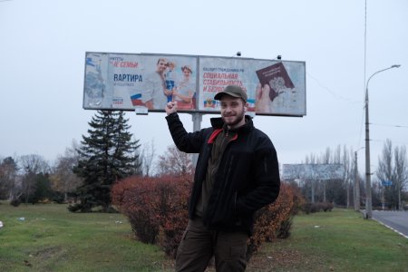 … Тоді ми хотіли зробити групове фото біля літачка – це один із найвідоміших пам’ятників міста, візитівка Бахмута. Нам треба було швидко пересуватися, ми їхали з «Птахами Мадяра», вже поверталися у місце розташування після зроблених фото. І от їдемо, Роберт Бровді саме розповідає, що має потужного янгола-охоронця і вдячний йому за опіку, але й навіть так краще зайвий раз не пересуватися обстрілюваним містом – і тут по нас «прилітає». Нас вберегло, що ми саме їхали повз багатоповерхівку, і погано скоригований росіянами постріл влучив у її дашок з іншого боку, не перелетівши саму будівлю – на нас лише посипалася цегла і каміння. Якби снаряд пролетів кількома метрами вище, то «ліг» би якщо б не по нам, то десь у безпосередній близькості», – розповідає Олександр..