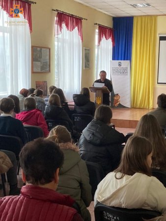 Під час заходу фахівець ДСНС розповів про основні рекомендації щодо поводження з вибухонебезпечними предметами, правила пожежної безпеки в побуті та в школі, безпечне використання електронагрівальних приладів й пічного опалення.