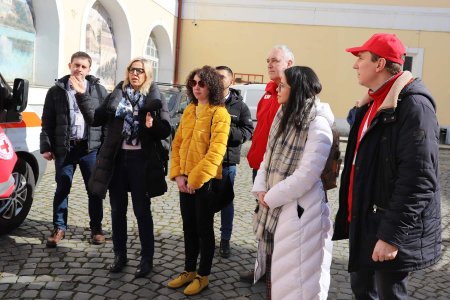 Операційний менеджер Міжнародної Федерації Товариства Червоного Хреста і Червоного Півмісяця Віолен дес Розіерс, координатор місії на Закарпатті Арвінд Бхардваж, оперативний менеджер та керівник охорони здоров’я Джеймі Ва, спеціаліст з охорони здоров'я місії на Закарпатті Олексій Граков навідалися, зокрема, до Ужгородської міської організації Товариства Червоного Хреста України, яку очолює Валентина Митровцій.