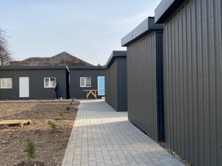 Тут майже повністю готові 10 тимчасових будівель – є меблі, вмонтована сантехніка, обігрівачі, підведені усі комунікації: водовідведення, водопостачання та електрика. Зроблено внутрішнє оздоблення: підвісні стелі, ламінат, кахлі. Ремонтні роботи у будівлі гуртожитку ліцею, що розміщений поруч, теж завершуються. Другий поверх майже повністю готовий для проживання, та підрядники оцінюють готовність усієї будівлі на 90 відсотків. Довершується косметичний ремонт, встановлено ламінат, вхідні двері, обладнані санвузли та кухні, вмонтовані електричні розетки, вимикачі лампи освітлення тощо. Ведуться роботи із благоустрою території гуртожитку: встановлені доріжки із бруківки, сформована площа під зелену зону, висаджені деревця туї, змонтовано дитячий майданчик та підготовлено основу для поліуретанового покриття. Виконавці робіт запевняють, що до Великодня переселенці можуть відсвяткувати новосілля.