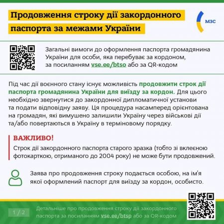 🇺🇦 Українці, які перебувають за кордоном, можуть безоплатно й оперативно продовжити строк дії свого закордонного паспорта.