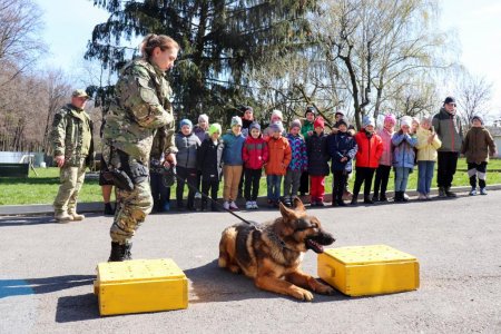 А згодом діти мали можливість самі переконатися у корисних вміннях чотирилапих вихованців Центру – вівчарок Айзи, Зевса та Бехи. Перед собаками було завдання знайти заховані заборонені речі, які вони зазвичай шукають на місцях вчинення злочинів, а потім знаходили речі, приховані самими школярами. Демонстрування своїх вмінь, уміле виконання команд та затримання умовного злочинця викликали справжній захват школярів.