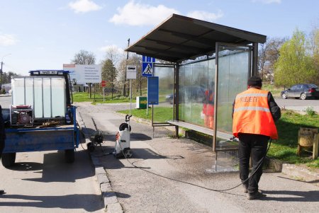 Працівники КП «КШЕП» розпочали роботи напередодні: мили спецзасобами автобусні зупинки по одній стороні вулиць Карпатської України (колишня Юрія Гагаріна), Минайської, Михайла Грушевського. Сьогодні працюють на вулицях Климента Тімірязєва, Собранецькій.