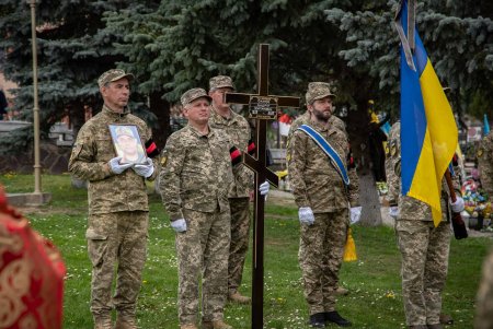 Священники відслужили заупокійну Літургію, від головнокомандувача Збройних Сил України генерала Валерія Залужного зачитали пам’ятний лист на знак глибокої вдячності за жертовне служіння у лавах ЗСУ.