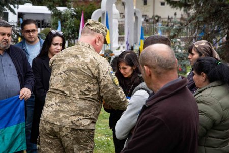 На площу Народну, де відбувся чин похорону, попрощатися із захисником прийшли рідні, близькі, друзі, військовослужбовці, міський голова Богдан Андріїв, заступник начальника Ужгородської РВА Радіон Кіштулинець, мешканці громади.