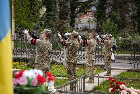 Жалобна хода пройшла до Пагорба Слави – тут ужгородця поховали із військовими почестями.