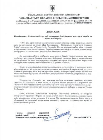 Відповідну Декларацію в межах конференції «Безбарʼєрна Україна» підписав Віктор Микита - голова Закарпатської ОДА.