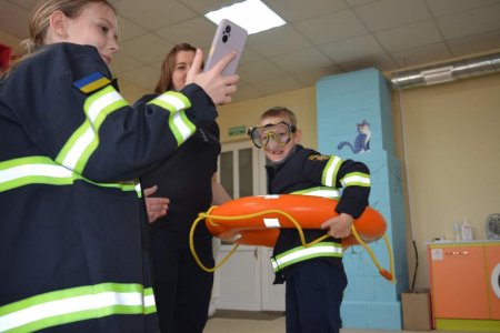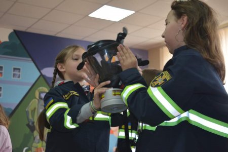 Під час інтерактивного уроку учні знайомилися із професіями фахівців ДСНС, приміряли їх форму та спорядження, вчилися робити те, що кожен день роблять рятувальники.