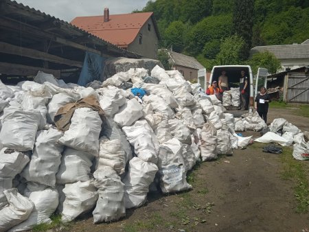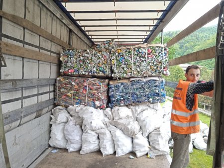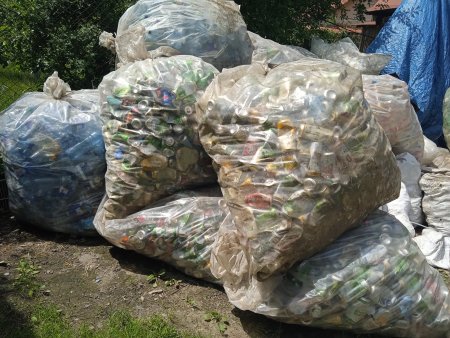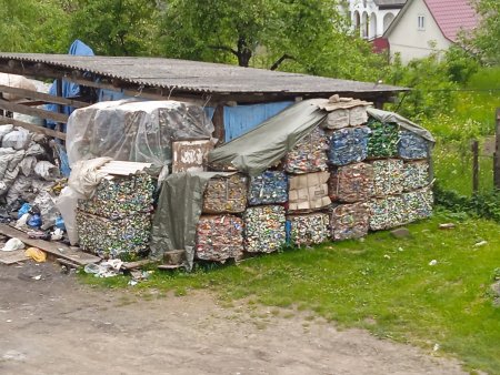 Сміття старанно збирають у цьому селі та сортують, вже потім відправляють Каміон з посортованим та спресованим вторинної сировиною (скло-пластик) зібраного з контейнерів вторинної сировини.