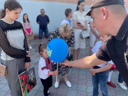 Продемонстрували діткам і службовий транспорт та запропонували малечі приміряти елементи повсякденного та спеціального "гардеробу" поліцейських. Малятам також подарували патріотичні повітряні кульки.