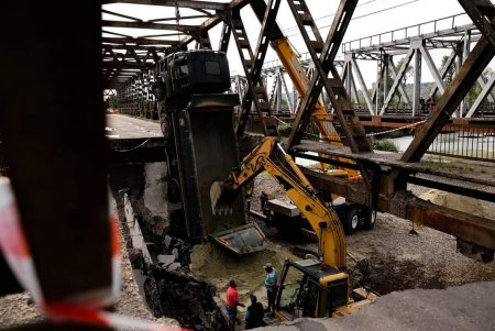 У Тересві завершили демонтаж зруйнованих частин мосту та вантажівки, яка застрягла на тримальних конструкціях