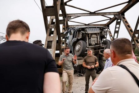 Завершили демонтаж зруйнованих частин мосту та вантажівки, яка застрягла на тримальних конструкціях. За допомогою крану великої вантажопідйомності і завдяки досвіду інженерів вдалося опустити транспортний засіб під міст та евакуювати за межі аварійної зони.