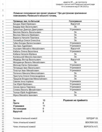 Однак майже половина депутатів утрималися від голосування – із 27 депутатів 13 проголосували “за”, 11 депутатів “утрималися”, а ще троє були відсутні.