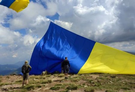 Найбільший прапор України повітряним змієм на вершині Говерли до Дня Незалежності України підняли вчителі Маріуполя