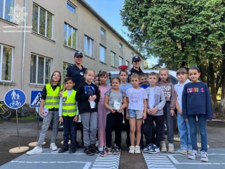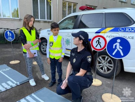 Інспектори зв’язків з громадскістю розповіли дітлахам про ПДР, правила поводження на пішохідних переходах та ознайомили з роботою регулювальників.