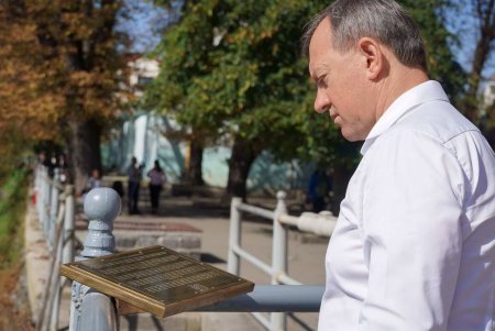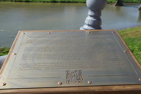 Пам'ятна дошка виготовлена з листа латуні, її закріпили на перилах біля річки Уж, кожен може ознайомитися з її змістом.