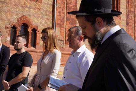На відкритті пам'ятної дошки рабин Ужгородський та Закарпатський Менахем Мендель зачитав молитву про померлих єврейською мовою.