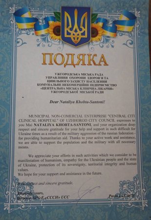 Днями очільниця організації Наталія Хобта-Сантоні знову приїхала в лікарню. ГО «Солідарність Україна-Корсика» розпочала свою діяльність 25 лютого 2022 року, з початком повномасштабного вторгнення росії в Україну: пані Наталія, до речі, уродженка Ужгорода, як лікар й як мати, не могла залишитися осторонь від подій у рідній країні.