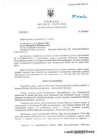 Закарпатський апеляційний суд під головуванням судді Бесага Д.Ю. звільнив з під варти підозрюваного Рубіша Ю.В. застосувавши до нього запобіжний захід у вигляді цілодобового домашнього арешту.