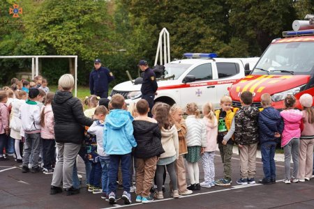 З учнями поспілкувалися вогнеборці та фахівці-піротехніки: обговорили основні дії у разі виникнення загорання, розглянули різні види вибухонебезпечних предметів і повторили номер Служби порятунку. Утім занадто теорією першачків не переобтяжували – натомість дали приміряти спорядження, потримати в руках металошукач і пустити воду з пожежного рукава.