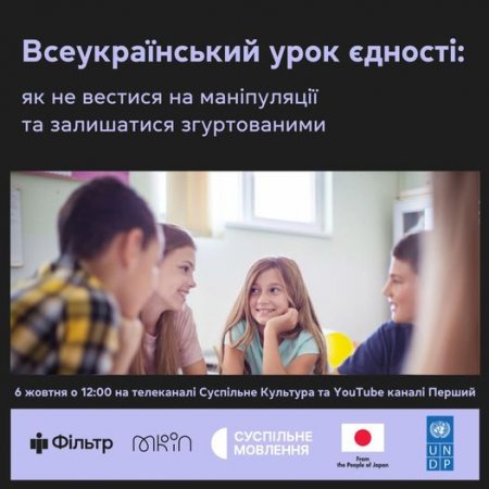6 жовтня відбудеться Всеукраїнський урок єдності для школярів 5-11 класів, їхніх батьків та вчителів