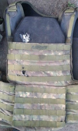 Боєць каже, що в нього стріляли з автомата метрів з тридцяти. Але захист виявився сильнішим за російську кулю.