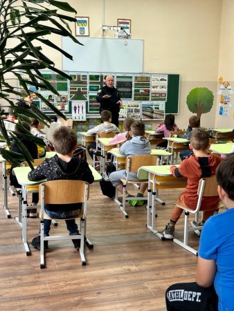 Також поліцейські нагадали школярам, як слід діяти під час сигналу повітряної тривоги. Для кращого засвоєння з дітьми в ігровій формі відпрацювали алгоритм дій на місці.