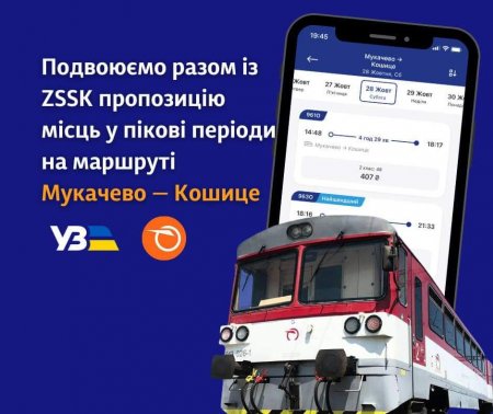 ⚡️🚊 На маршруті Мукачево — Кошице в пікові періоди Укрзалізниця та ZSSK удвічі збільшують кількість місць.
