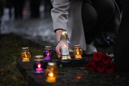 До пам’ятного знаку борцям за свободу і незалежність на площі Народній в Ужгороді поклали квіти й лампадки Віктор Микита - голова Закарпатської ОДА, Роман Сарай - голова Закарпатської обласної ради, представники Молодіжна рада при Закарпатській ОДА, студенти та громадськість.