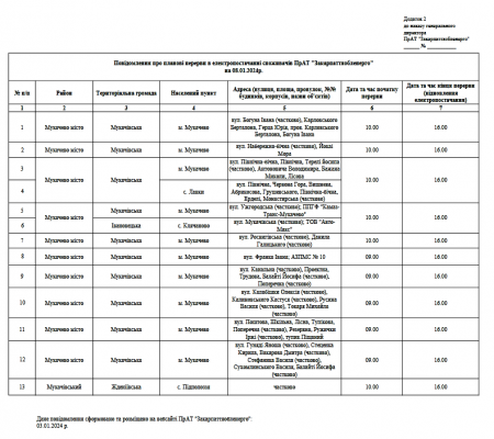 Закарпаттяобленерго повідомляє про планові перерви в електропостачанні - графік