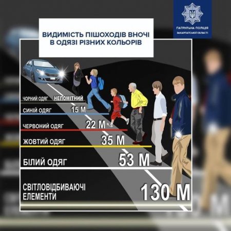 ❗️Нагадуємо, що світловідбивачі роблять пішохода помітним у темну пору доби. Для того, щоб зманеврувати на швидкості 50 км/год, водієві потрібно 150 метрів. У світлому одязі пішохід стає помітним за 30-75 м, а цього недостатньо для уникнення ДТП. Зі світловідбивачем пішохід стає помітним за 300 м. Таким чином, додаючи світловідбиваючі елементи на одяг, ми на 85% знижуємо шанс потрапити в автопригоду.