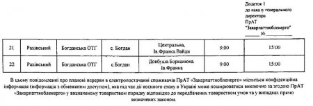 Сьогодні на Рахівщині у одній із ТГ не буде електроенергії