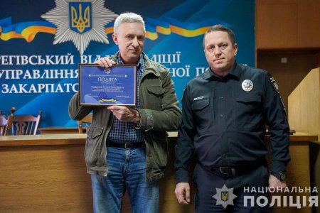 Подяками керівника ГУНП в Закарпатській області відзначено двох поліцейських та волонтера, які своєю пильністю та професійними діями днями врятували чоловікові життя.
