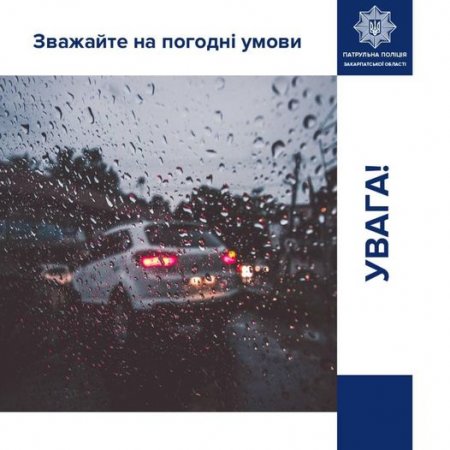 Учасники дорожнього руху, закликаємо вас бути максимально уважними, обережними та неухильно дотримуватися ПДР, оскільки на території області дощить!