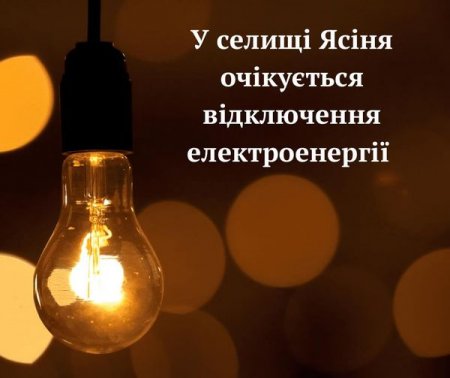 Сьогодні, 20 лютого у селищі Ясіня проводитимуться аварійні ремонтні роботи у зв’язку із чим буде здійснено відключення електроенергії по декілька годин на протязі дня.