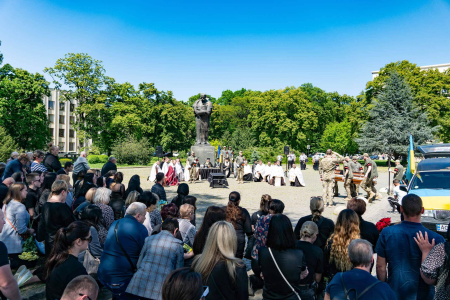 Прощалися із воїном на площі Народній. Віддати шану захиснику прийшли рідні, близькі, друзі, міський голова Богдан Андріїв, військові, містяни.