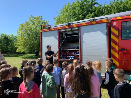 Протипожежний захід почався з відпрацювання дій по евакуації учнів і педагогів з освітнього закладу та плавно перейшов до інструктажу з користування вогнегасником.