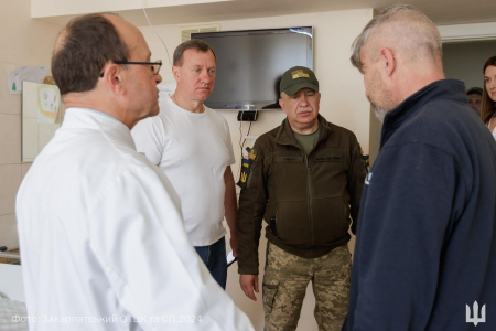 Під час візиту начальник Ужгородського РТЦК та СП також поспілкувався з лікарями та військовими, поцікавився умовами, в яких лікуються захисники.