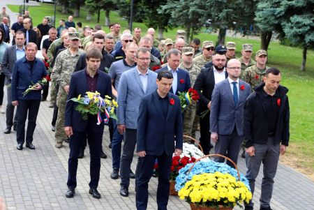 Керівники краю та Ужгорода, дипломати, представники правоохоронних органів та силових структур, ДСНС, військові, громадськість поклали квіти до Меморіалу загиблим воїнам на Сходи і до могил загиблих українських Героїв на Пагорбі Слави.