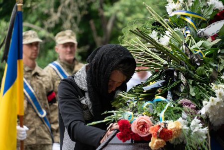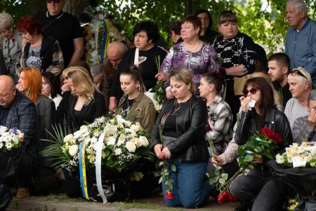 Після заупокійної літургії жалобна хода вирушила із набережної Незалежності до Пагорба Слави, де Євгенія Белкіна поховали із військовими почестями.